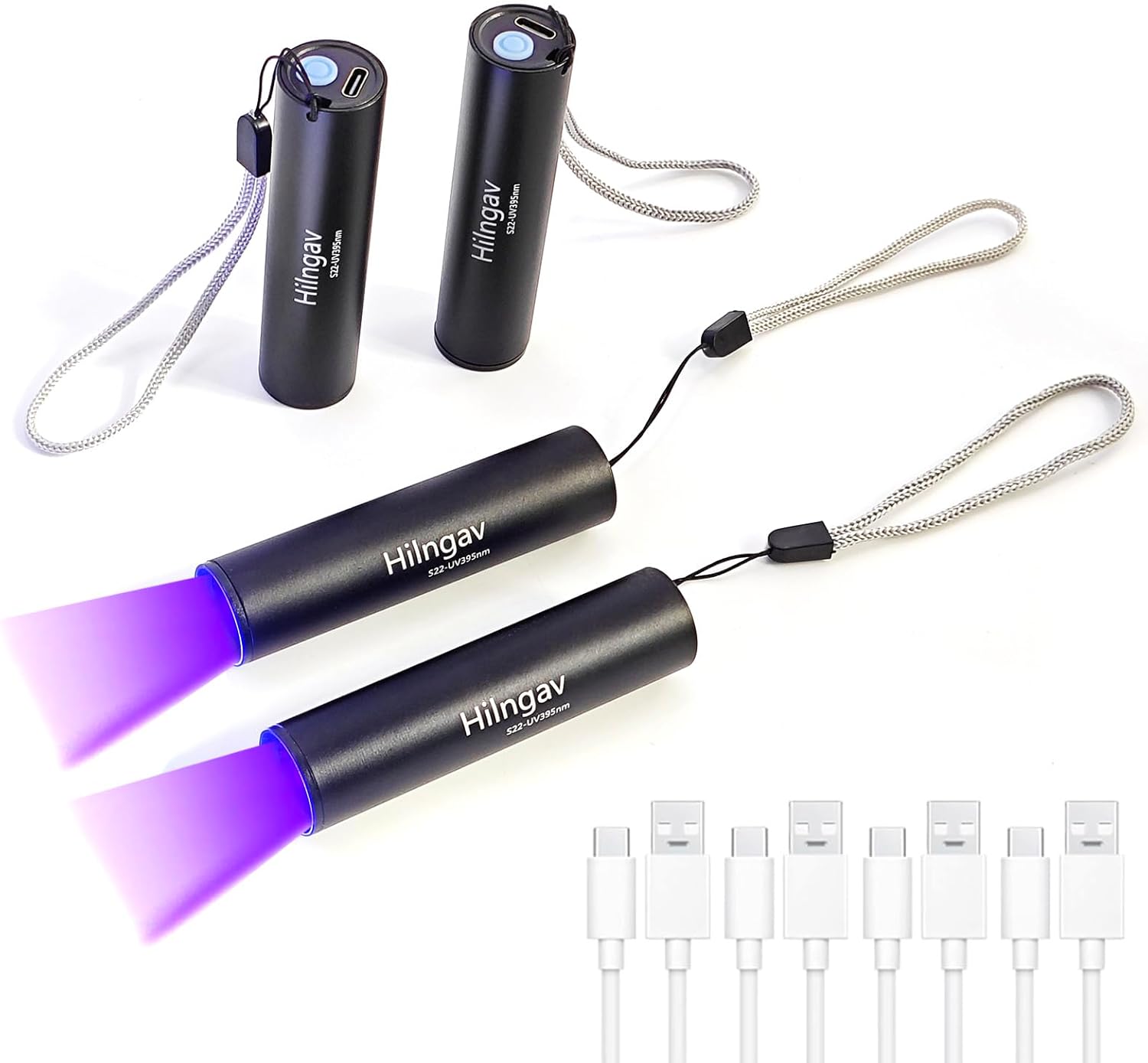395 Features: 10 x Mini 395 NM Flashlight Sturdy and reliable: The flashlight for camping adopt quality aluminum, reliable in quality, not easy to break or rust, serving you for a long time. Specifications: Main material: aluminum Color and size: as shown in the pictures Package includes: 10 x UV Black Light 395 NM Flashlight 10 x Usb C Cable Notes: Manual measurement, please allow slight errors on size. The color may exist a slight difference due to different screen displays.