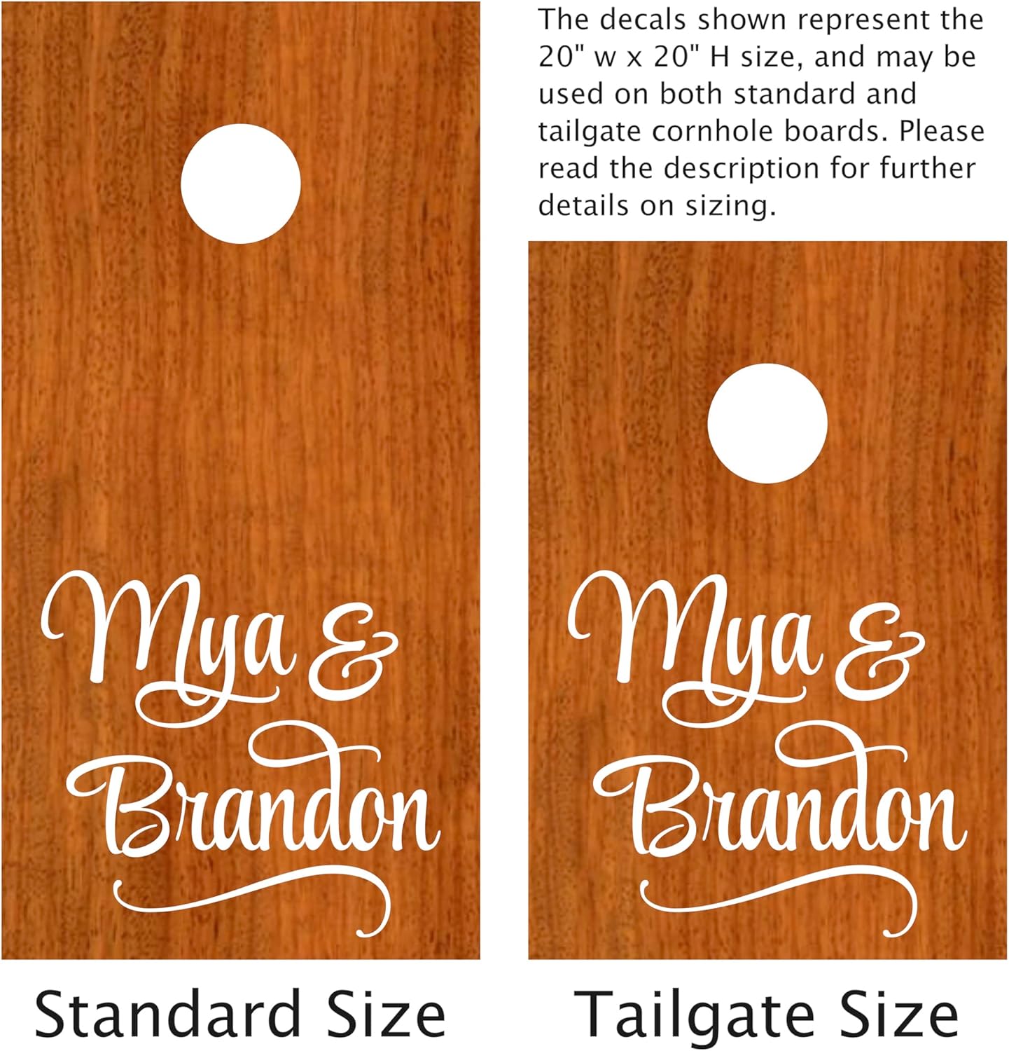 Introducing the perfect way to add a personal touch to your wedding celebration! Our set of 2 personalized decals are the perfect way to show off the newlyweds-to-be on your cornhole boards. These decals come in a swooping font with a stylish swoosh at the bottom, featuring the first names of the bride and groom. Use these decals as a unique alternative to the traditional wedding guestbook, letting your guests sign your cornhole boards and creating a one-of-a-kind keepsake to cherish for years to come. With a size starting at 12" wide, these decals can be used for a variety of decoration projects, so don't feel limited to just cornhole boards. Each set of names is unique, so the actual height may vary and the & symbol may be placed differently, making your decals truly one-of-a-kind. So get ready to add a playful and personalized touch to your wedding celebration with these fun and friendly decals! Cornhole boards are sold separately on Amazon. This listing is for the decal only, cornhole boards not included. *May not stick to raw wood* Please scroll through the more by Vinyl Written for additional Wedding decals we offer.