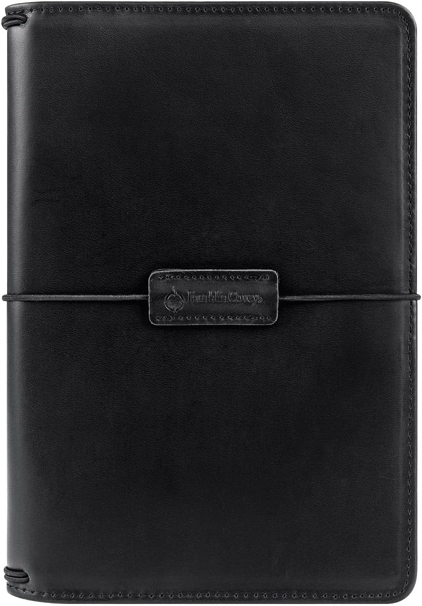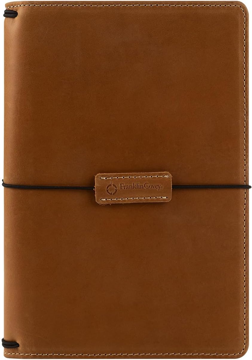 Bring beauty and simplicity to your planning sessions with this deluxe, yet minimal Travelers Cover. The soft, semi-structured cover feels comfortable in your hand, lies flat when open, and protects your pages from damage. Its velvet-like, genuine nubuck leather reveals its natural grain, so you can be sure that no two covers are exactly alike. Built with simplicity in mind, it offers a pen loop, document pockets, a secretarial pocket, and card pockets. Sturdy elastics inside the spine hold your planner booklets and notebooks in place. The cover is secured with an elastic strap embellished with the FranklinCovey logo in matching leather. Elastics can be removed and replaced to add variety to your plans. Fits most slim design planners.