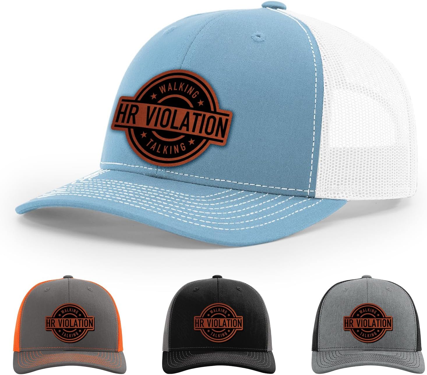 Looking for a stylish and comfortable accessory that's perfect for any casual occasion? Look no further than the Funny Walking Talking HR Violation Hat! The contrasting more than 100+ hat color options add a modern flair, while the rawhide leather patch, precision laser-engraved, conveys the feelings shared by many. The 112 Style snapback style ensures a comfortable and secure fit for all head sizes, with a timeless design that combines quality and style. Embrace the message of hard work and show off your dedication with this must-have addition to any hat collection. So why wait? Add the Funny Walking Talking HR Violation Hat to your accessory collection today and show off your unique personality and style!
