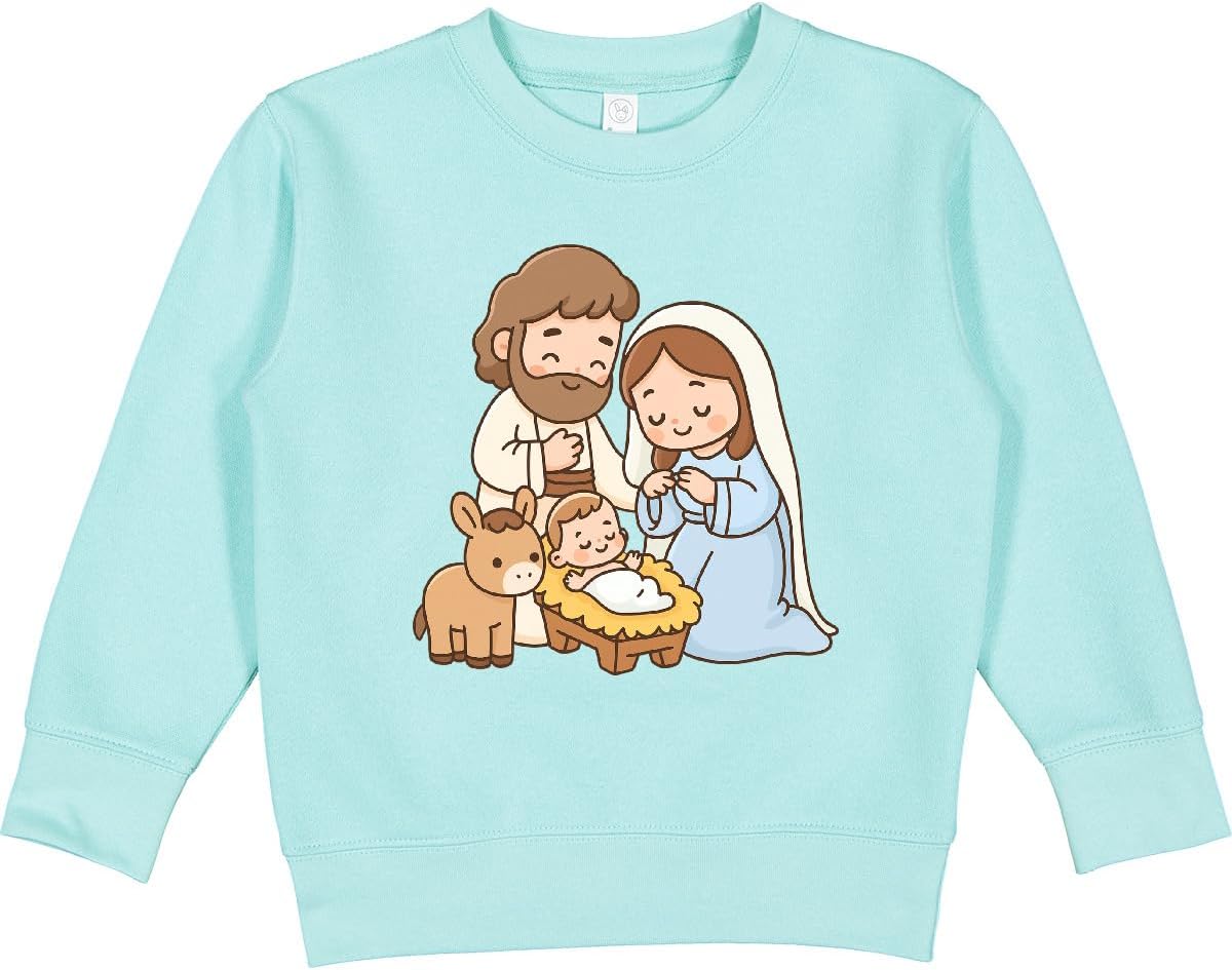 Celebrate the spirit of Christmas with this adorable Nativity Scene. Featuring Mary, Joseph, baby Jesus, and a donkey, this Toddler Sweatshirt captures the joy of the holiday season.
