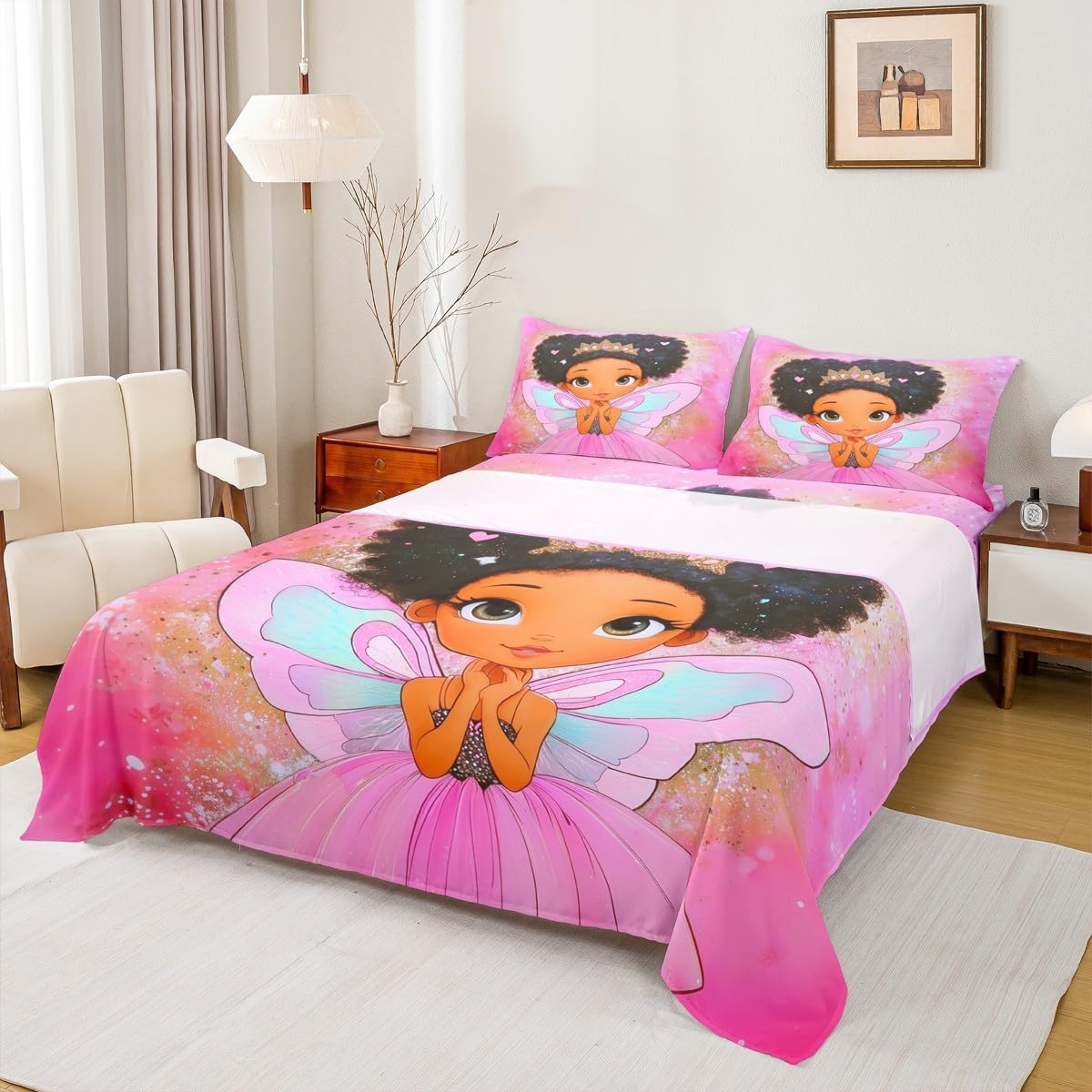 Our bed sheet is made of polyester fabric, lightweight and soft; stylish design is very suitable as room decoration for boys and girls; keep warm in winter and cool in summer; create a comfortable sleeping environment to make you fall asleep all night Range of size 1 twin fitted sheet 39 inch x 75 inch x 16 inch and 1 twin flat sheet 66 inch x 96 inch and 1 standard pillowcase 20 inch x 30 inch 1 full fitted sheet 54 inch x 75 inch x 16 inch and 1 full flat sheet 81 inch x 96 inch and 2 standard pillowcase 20 inch x 30 inch 1 queen fitted sheet 60 inch x 80 inch x 16 inch and 1 queen flat sheet 90 inch x 102 inch and 2 standard pillowcase 20 inch x 30 inch 1 king fitted sheet 78 inch x 80 inch x 16 inch and 1 king flat sheet 90 inch x 106 inch and 2 standard pillowcase 20 inch x 36 inch