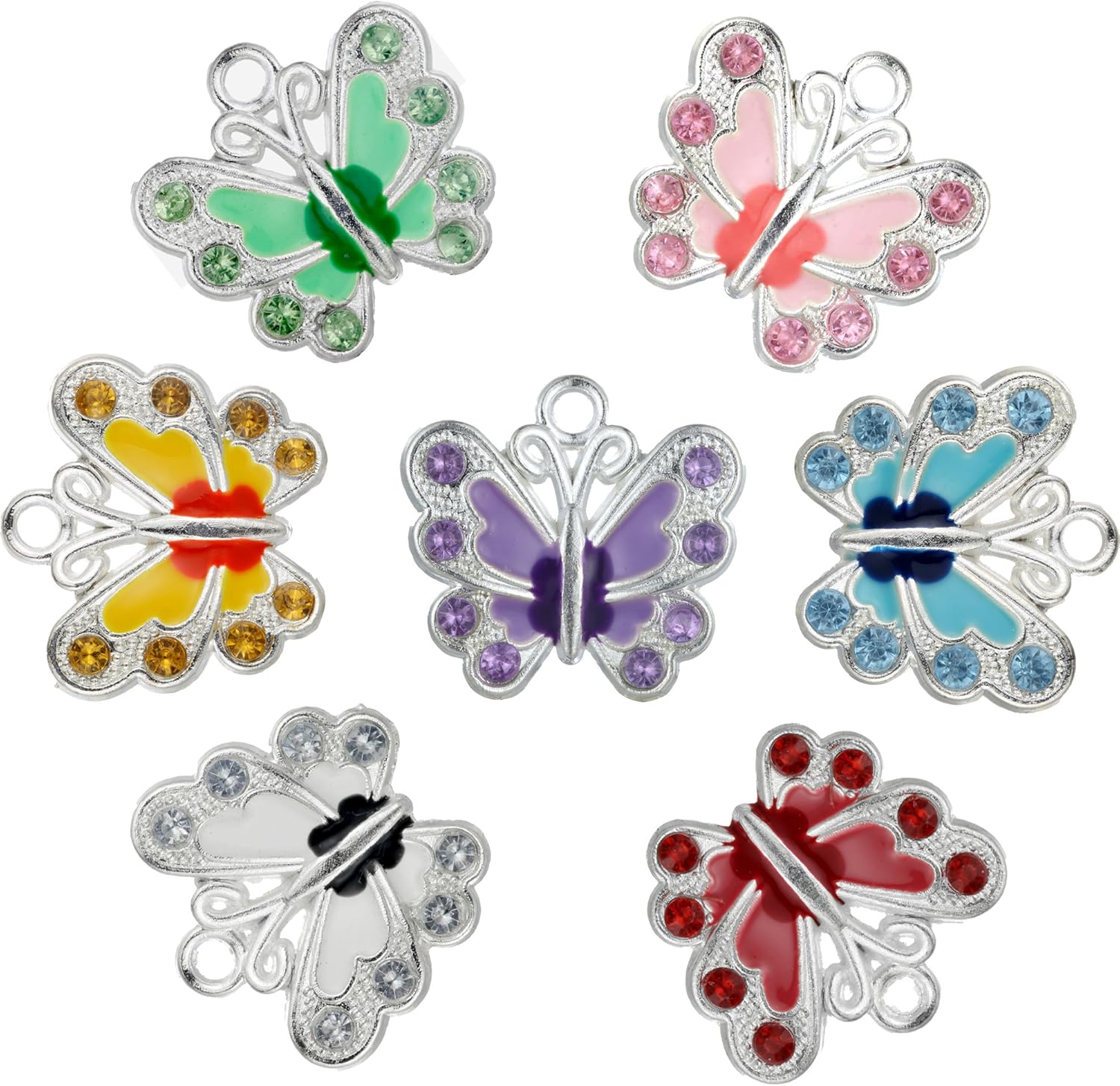 RUBYCA Silver Plated Butterfly Enamel Charm Beads Pendants for DIY Jewelry Making Our Collection of butterfly bead pendants are crafted from a versatile range of beautiful and lasting materials at affordable prices, they can be used by attaching jump rings to it or simply as it is. Butterflies are deep and powerful representations of life. Many cultures associate the butterfly with our souls and it symbolizes endurance, change and hope. Butterflies have also been a symbol for celebrations, weddings, life, and our journeys, making it the ultimate and meaningful gift for yourself or loved ones. These RUBYCA pendants fits for luxury jewelry making. From modern to cool retro shapes, make a stunning statement and get noticed wherever you go. Comes with Genuine RUBYCA Easy Zip Bag Please note * Due to lighting effects, monitor's brightness/contrast settings there could be some slight differences in the color tone of the pictures and the actual item. * Product in the picture may look larger than the actual, please pay attention to sizes.